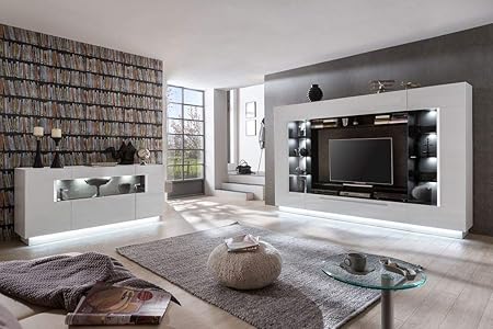 Froschkonig24 Dundee 2 Wohnwand Set Anbauwand Mit Sideboard 2 Teilig Hochglanz Weiss Led Beleuchtung Ohne